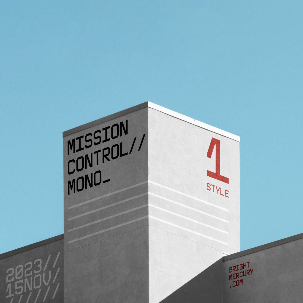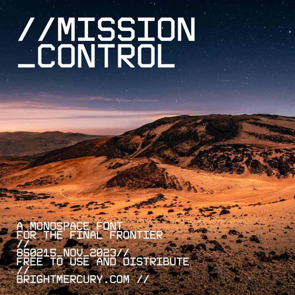 Mission Control, a monospaced font that draws inspiration from space conquest and the bold markings found on spacecraft and the intrepid suits of astronauts.