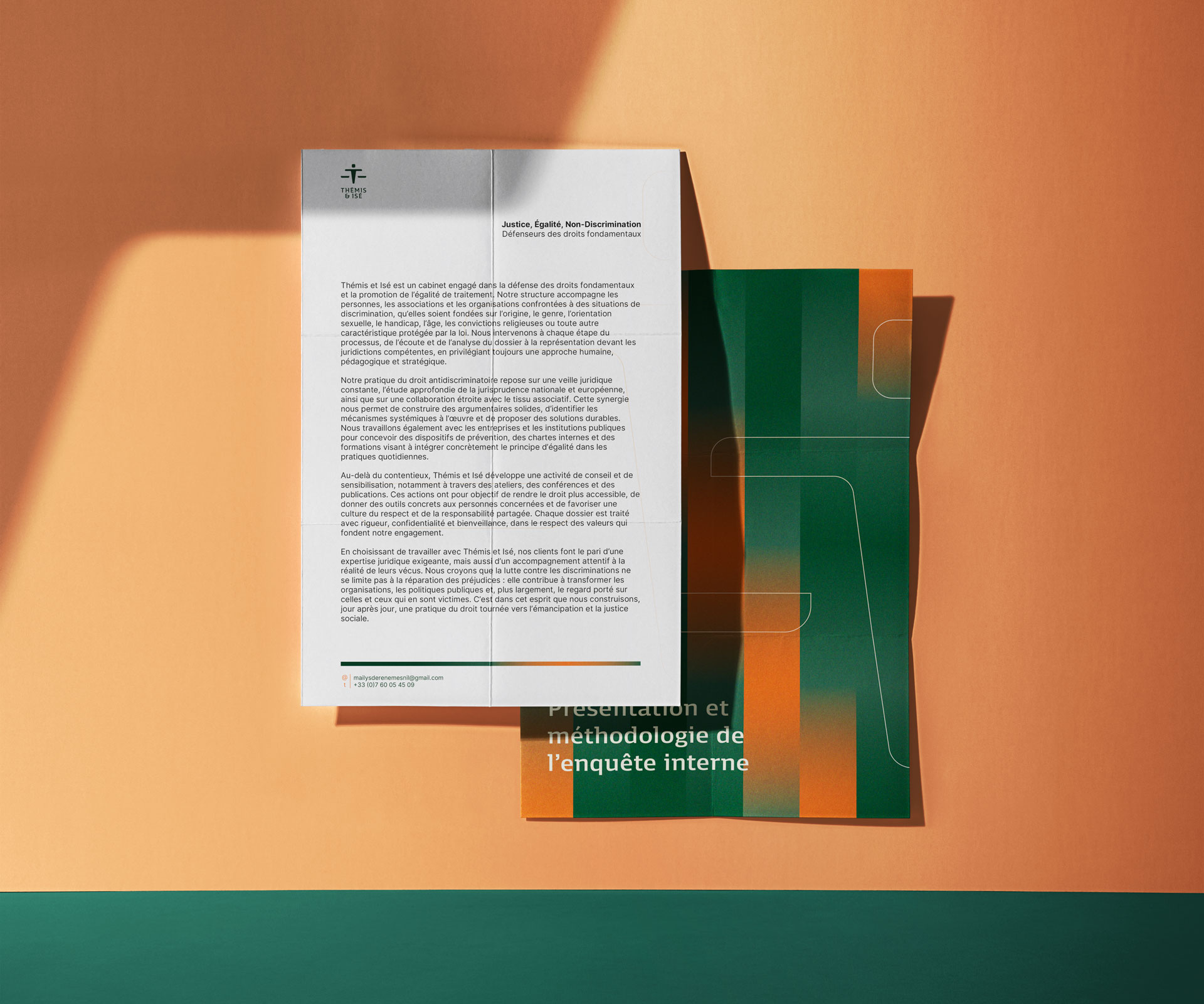 Thémis & Isé supports public and private organizations on issues of discrimination, gender-based violence and sexual violence, through training, lectures, investigations, and crisis-management assistance. Its visual identity was designed to convey the values of justice and equality carried by its name, while also embodying the benevolence, protection, and commitment of its founder.